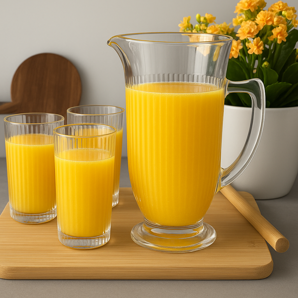 Para você que está projetando ou renovando os utensílios da cozinha, precisa pensar em itens que ofereçam beleza e praticidade. Na hora de servir bebidas à família e convidados, ter esses itens a disposição, faz toda a diferença nos resultados e deixa o ambiente ainda mais aconchegante. A Haus Concept apresenta o conjunto de jarra e copos Canelado. Ideal para servir diversos tipos de bebidas tanto no uso diário, como em ocasiões especiais. Fabricado em vidro transparente, a a jarra tem 1L de capacidade e os copos, tem 350ml. Composto por 7 peças (6 copos e 1 jarra).