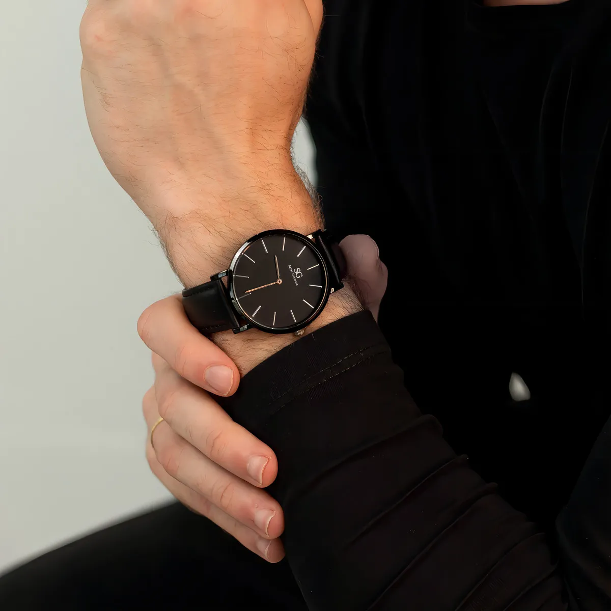 Relógio Minimalista Saint Germain Preto Pulseira de Couro Murray Full Black 40mm – Elegância e Versatilidade em Cada Detalhe